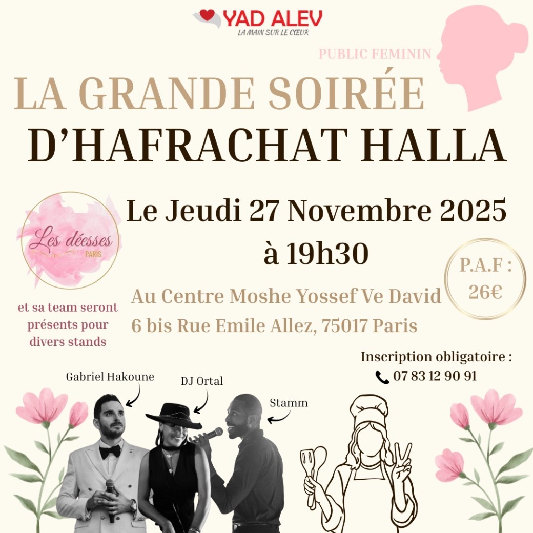 2025-11-27 19:30:002025-11-27 23:55:00Europe/ParisLa Hafrachat Halla - Yad Alev x YadLajoieReservations on : https://www.billetweb.fr/la-hafrachat-halla-yad-alev-x-yadlajoie