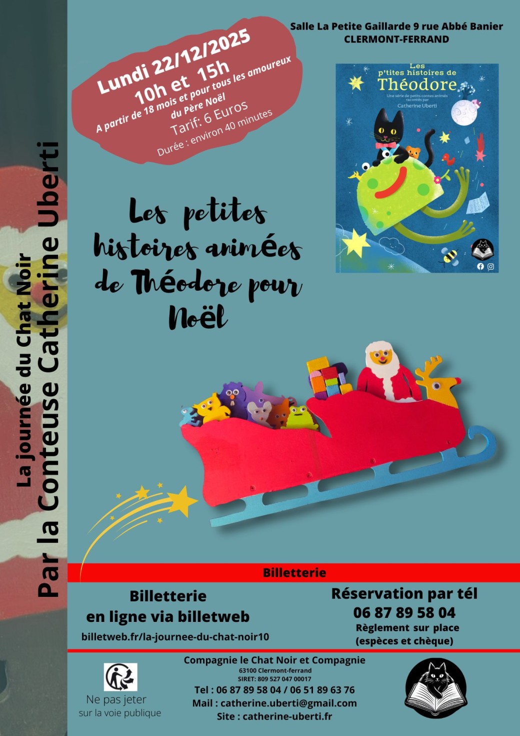 La Journée du Chat Noir lundi 22 décembre 2025 vous propose de venir découvrir dans la série "Théodore raconte..." les deux petits contes de Noël, animés avec des personnages en bois dont le grand chat et la grenouille Nounouille assurent le fil conducteur.