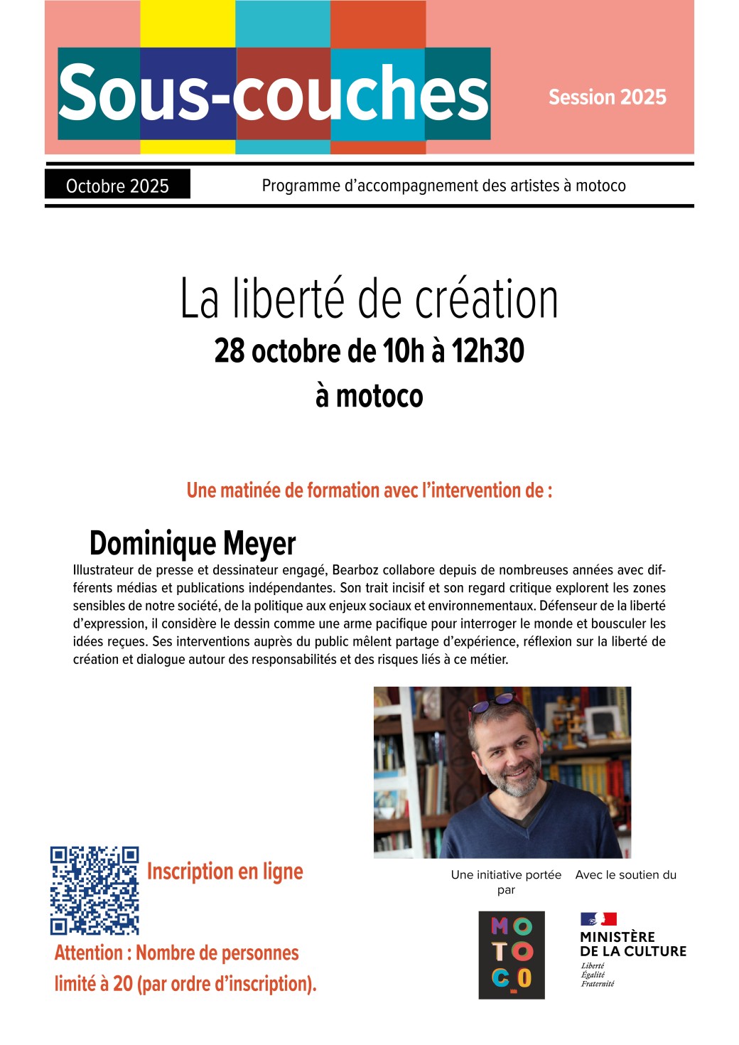 Depuis janvier 2024, motoco met en oeuvre, grâce au soutien du Ministère de la culture, un programme de formation et d'accompagnement des artistes, dans l'objectif de les aider à mieux maitriser les fondamentaux administratifs et à enrichir les méthodologies de travail.
