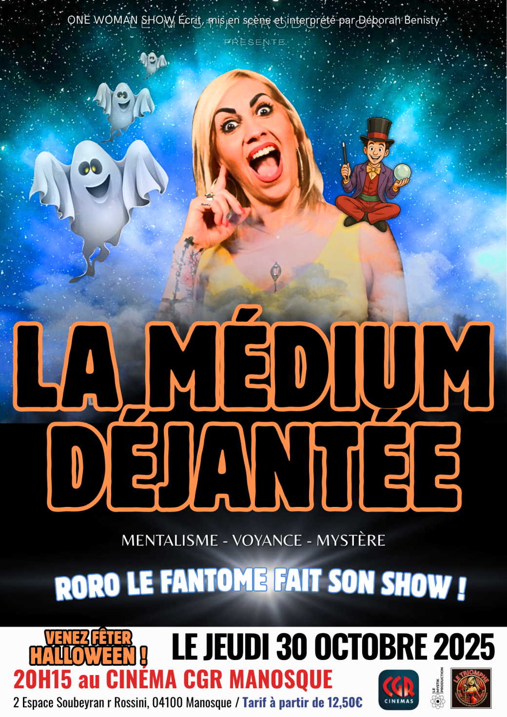 2025-10-30 20:15:002025-10-30 21:30:00Europe/ParisCGR MANOSQUE - La Médium Déjantée "Roro le fantôme fait son Show"Reservations on : https://www.facebook.com/letriomphe.spectacle