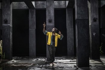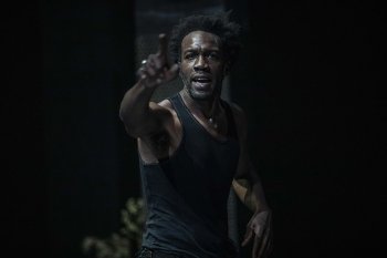 Matthieu Cruciani a confié ce texte âpre et sublime au comédien magistral Jean-Christophe Folly. Il est accompagné d’une musique aux accents de sonate baroque restituant aussi les rumeurs du monde. L’espace scénographique nous saisit par sa dimension fantasmatique, et le spectacle nous entraîne comme un travelling au travers de la nuit.