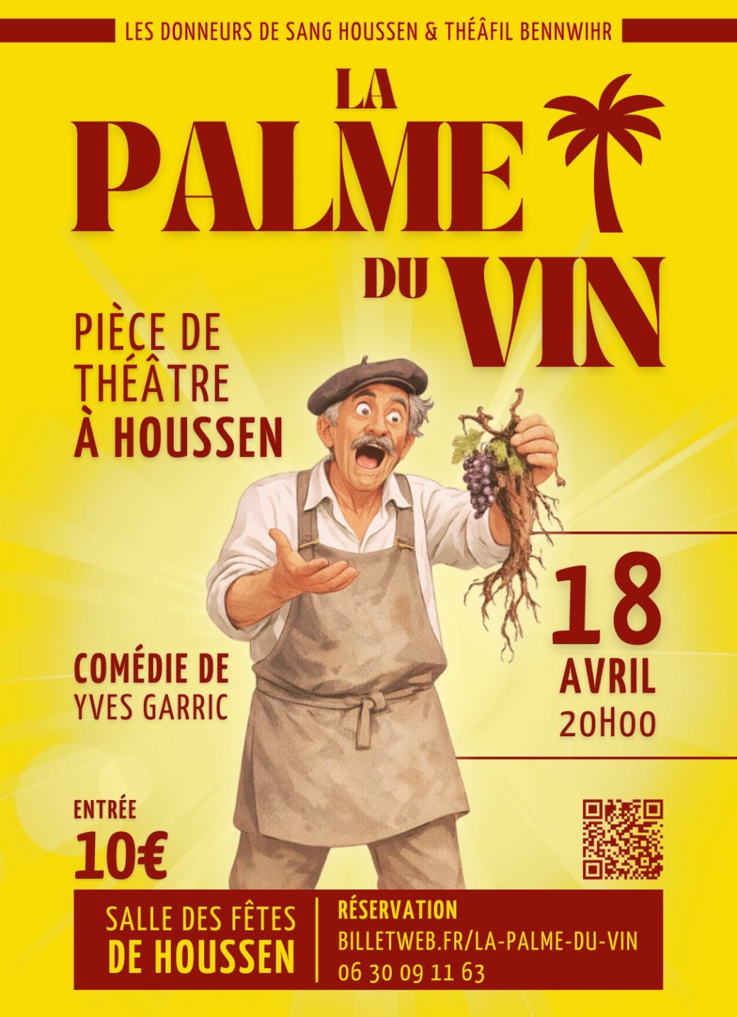 2026-04-18 20:00:002026-04-18 20:00:00Europe/ParisLa Palme du Vin - Pièce de Théâtre à HoussenReservations on : https://www.billetweb.fr/la-palme-du-vin