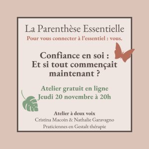 2025-11-20 20:00:002025-11-20 21:30:00Europe/ParisLa Parenthèse Essentielle - Confiance en soi : et si tout commençait maintenant ?Reservations on : https://www.billetweb.fr/la-parenthese-essentielle-confiance-en-soi-et-si-tout-commencait-maintenant