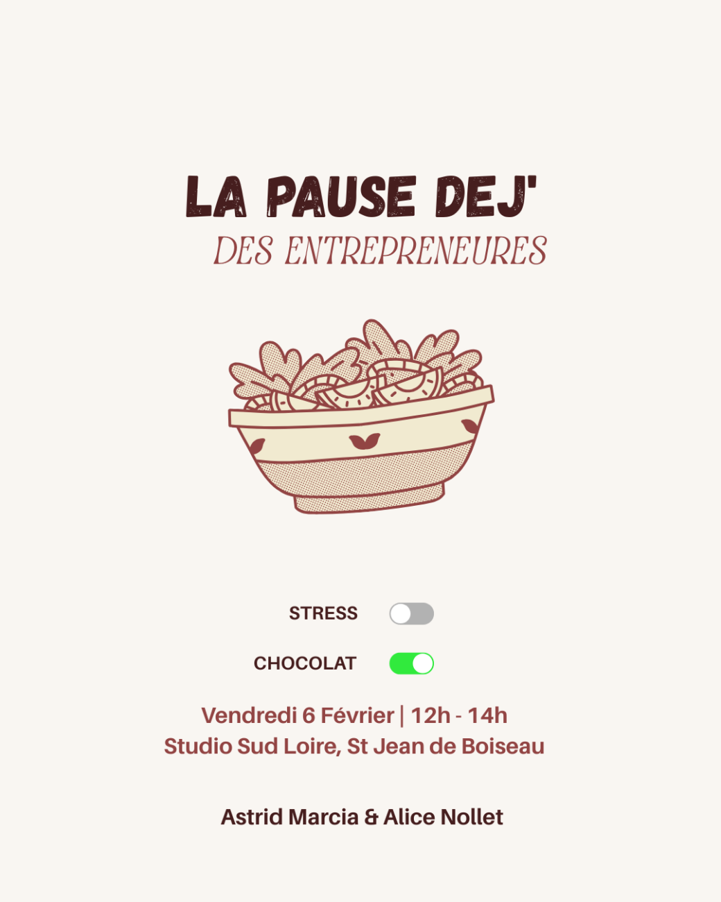 La pause dej, c’est un moment convivial et gratuit, pour échanger sur nos métiers, nos galères d’entrepreuneures , nos fiertés, nos doutes et nos victoires !