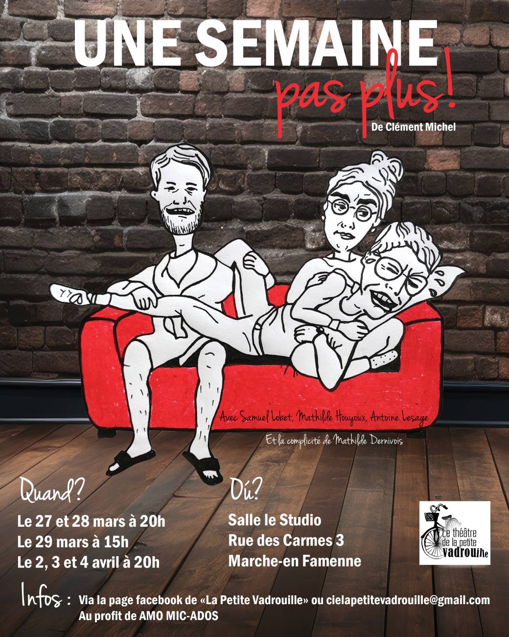 2026-03-27 20:00:002026-04-04 22:00:00Europe/BrusselsLa Petite Vadrouille - Une semaine pas plusReservations on : https://www.billetweb.fr/la-petite-vadrouille-une-semaine-pas-plus