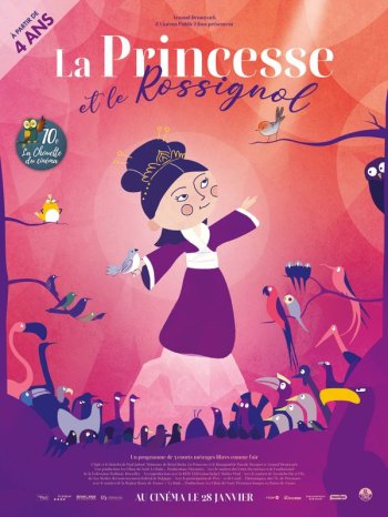 La Princesse et le Rossignol (26') : Cerise, six ans, vit protégée par ses parents dans leur grande propriété. Passionnée par les oiseaux, elle ignore que son père l’empêche de prendre son envol. Tout change le jour de ses sept ans, lorsqu’elle reçoit des jumelles. Elle découvre alors Fleur, la fille du jardinier, qui explore librement le domaine. Fascinée par son récit sur un oiseau inconnu, le rossignol, Cerise n’a plus qu’un rêve: le trouver.