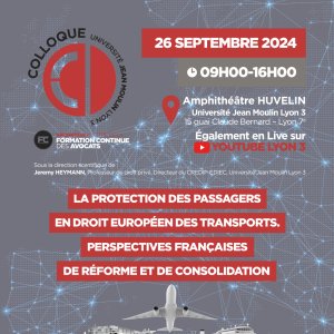 2024-09-26 09:00:002024-09-26 16:00:00Europe/ParisLa protection des passagers en droit européen des transportsReservations on : https://www.billetweb.fr/la-protection-des-passagers-en-droit-europeen-des-transports