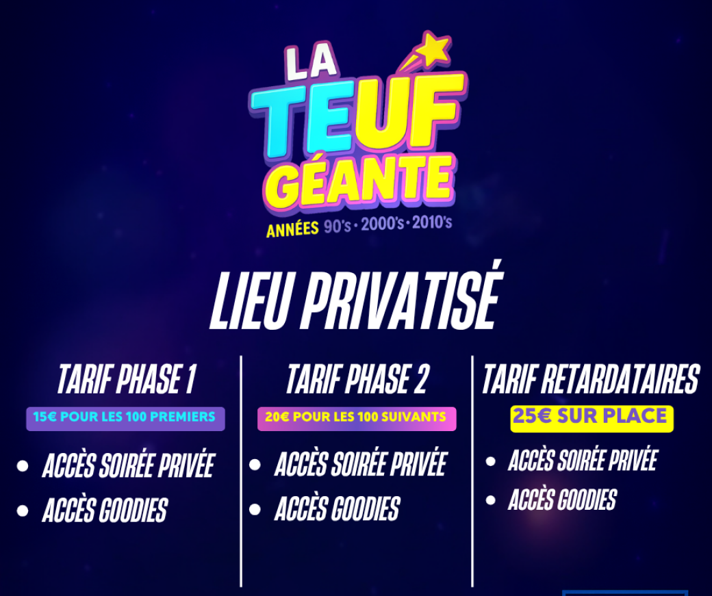 Arrivez tôt pour profiter pleinement de la soirée et garantir l’accès avant 00:00.