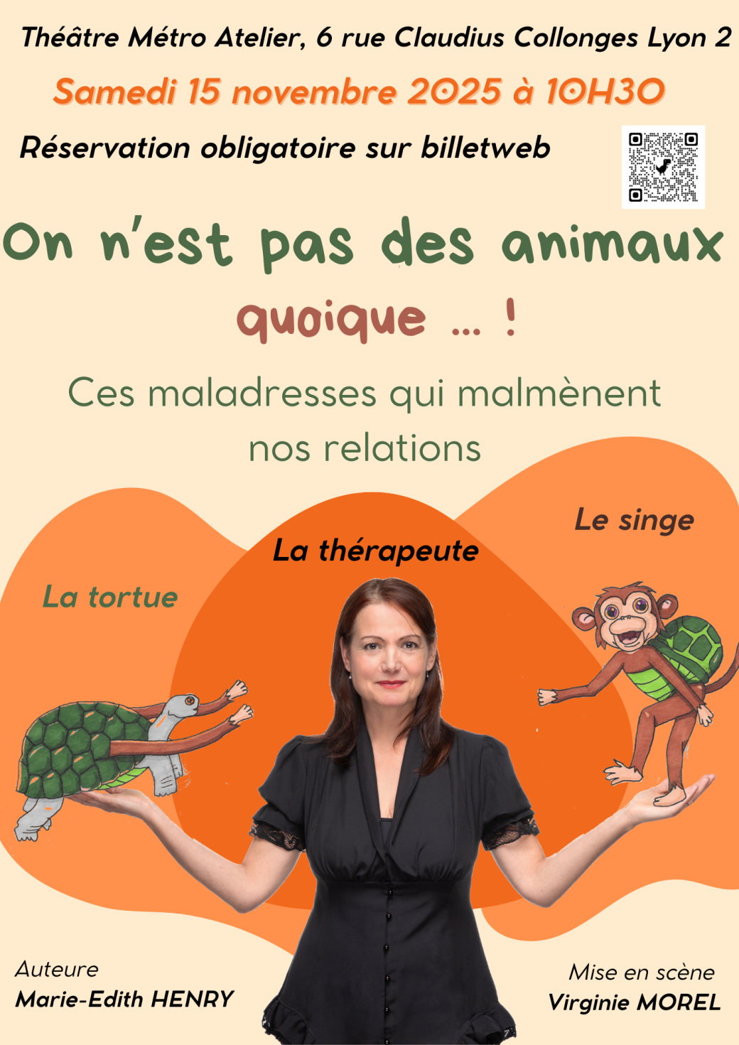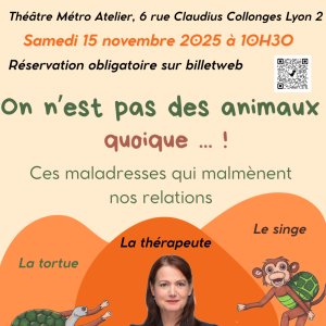 Reservations on : https://www.billetweb.fr/la-therapeute-le-singe-et-la-tortue2 --