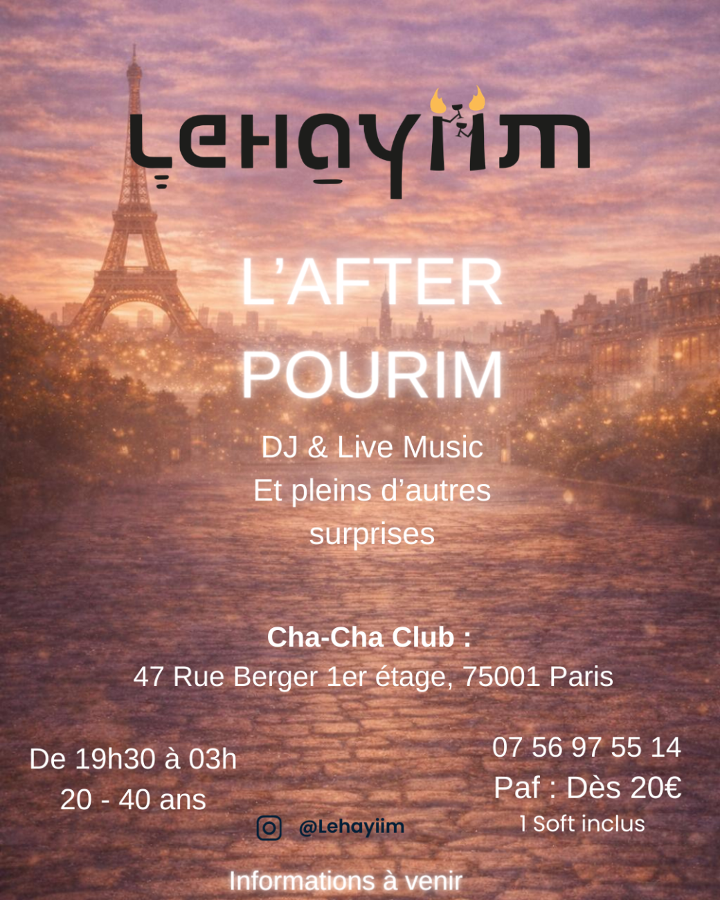 Reservations on : https://www.billetweb.fr/lafter-pourim-lehayiim --
