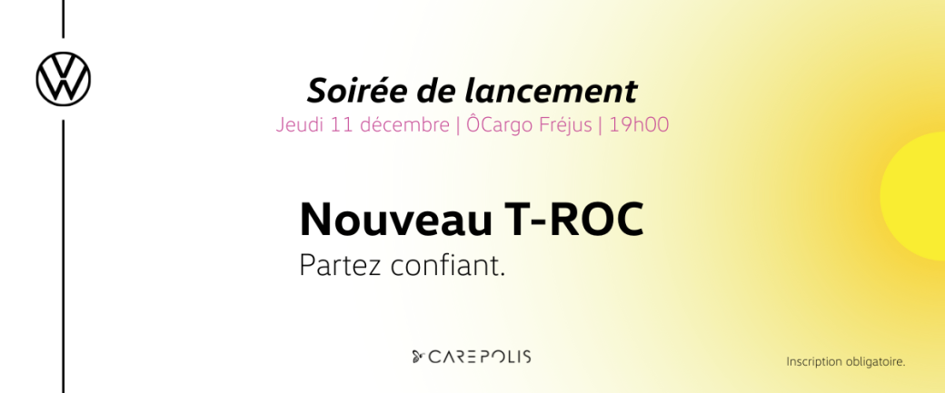 Nous avons le plaisie de vous inviter à une soirée exceptionnelle dédiée au lancement du Nouveau T-ROC !