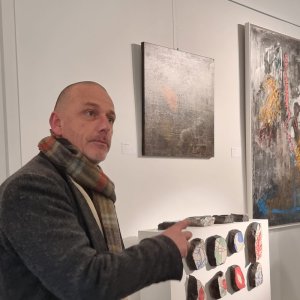 À travers ses toiles et ses « pierres céramique » – fragments colorés évoquant des vestiges imaginaires, entre ruines antiques et cités englouties – l’artiste invite à réfléchir sur la mémoire et le passage du temps.