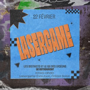 2025-02-22 10:45:002025-02-22 13:00:00Europe/ParisLaser GameReservations on : https://www.billetweb.fr/laser-game32