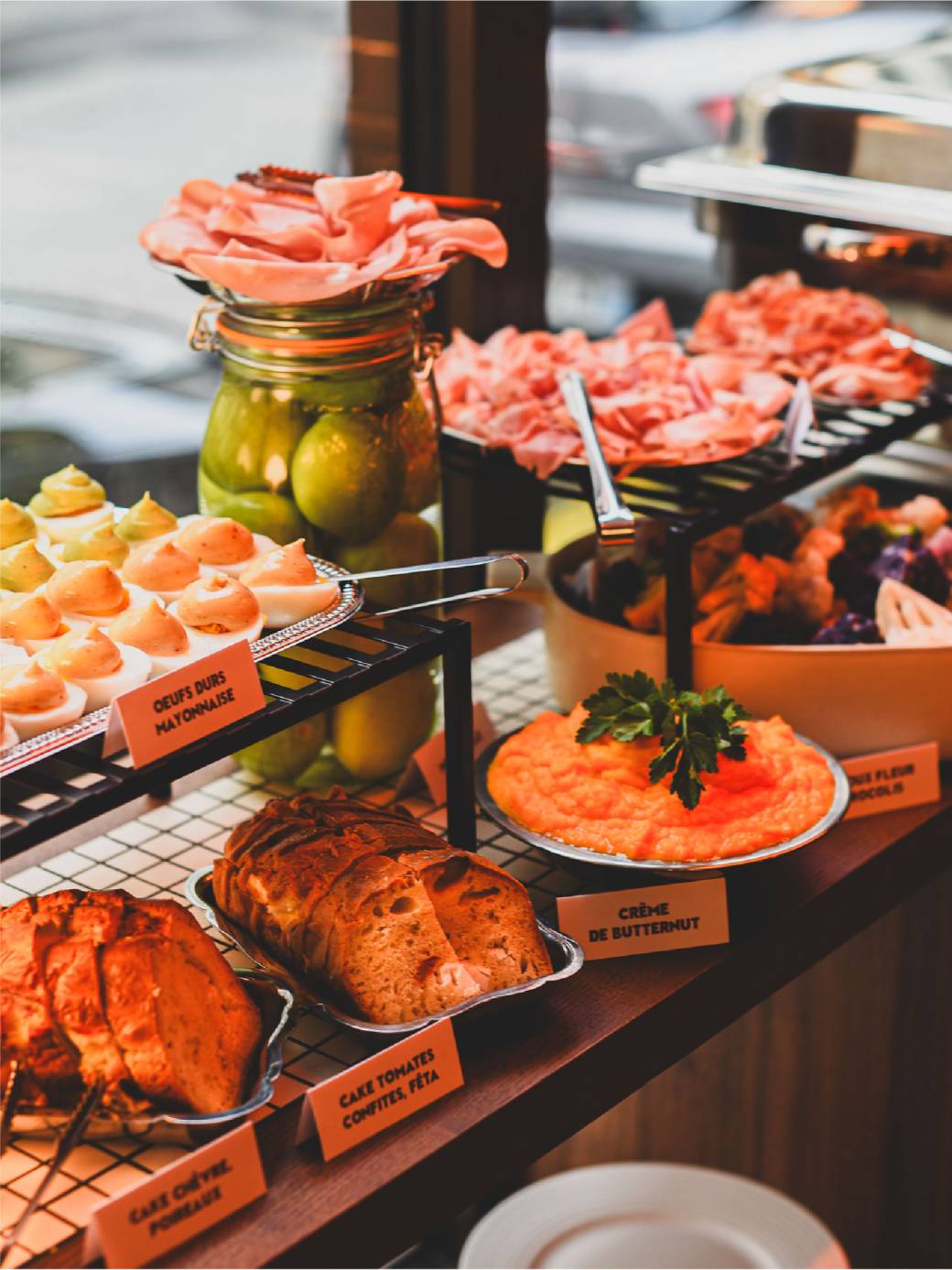 Le chef vous prépare un buffet à volonté sucré et salé en libre-service accompagné de plats (toujours à volonté) à commander directement au comptoir.
