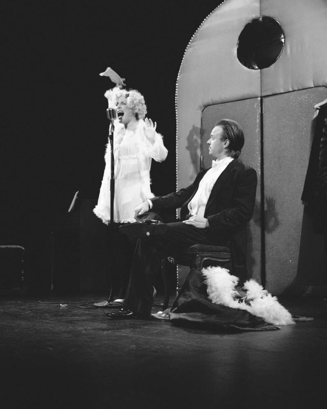 Mais lorsqu’un gangster de Chicago la découvre sur scène et tombe sous son charme, les deux complices craignent d’être démasqués et les évènements vont prendre une autre tournure… Mimodrames, chansons et chorégraphies rythment cette comédie burlesque, émouvante et poétique. L’histoire d’une fascinante imposture ponctuée de gags en tous genres et de numéros de music-hall.