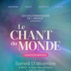 C'est avec un grand plaisir que les Saltimbanques de l'Amour vous proposent "Le Chant du MONDE - Chants de mantras" le samedi 13 décembre à 16h en don libre en conscience.