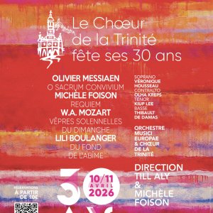 Olivier Messiaen fut l’organiste fidèle de l’église de la Trinité pendant 61 ans et Michèle Foison fut son élève dans sa classe de composition au conservatoire de Paris. Lili Boulanger est née tout à côté. Décédée prématurément, ses obsèques ont eu lieu dans cette église et la place des sœurs Lili et Nadia Boulanger, à deux pas de la place de Clichy, marque leur attachement à ce quartier. Enfin, Wolfgang Amadeus Mozart, tant admiré par Olivier Messiaen qui le désignait comme « le musicien du musicien ». Il lui a consacré une étude de ses 22 concertos pour piano.