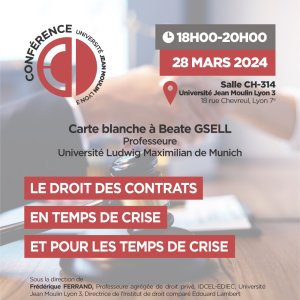 2024-03-28 18:00:002024-03-28 20:00:00Europe/ParisLe droit des contrats en temps de crise et pour les temps de criseReservations on : https://www.billetweb.fr/le-droit-des-contrats-en-temps-de-crise-et-pour-les-temps-de-crise