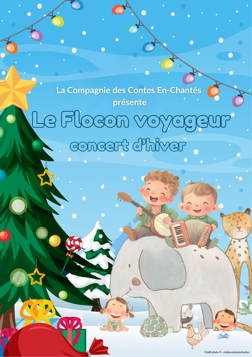 Cet hiver, le petit flocon veut partir en voyage mais personne ne peut l’accompagner. Il décide de partir seul réaliser son rêve aidé par le vent froid de l’hiver. Dans ce concert/spectacle découvrez le voyage du flocon voyageur dans une ambiance feutrée et hivernale qui réchauffe le coeur des enfants. Un large répertoire revisité des chansons de l’hiver et de Noël avec des arrangements musicaux originaux pour petits et grands.