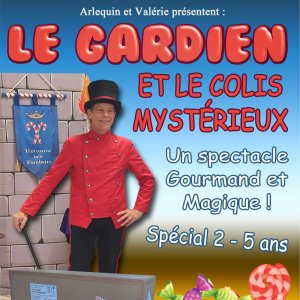 Arlequin, le gardien des bonbons est également le magicien du royaume. Il a commandé une machine à fabriquer les bonbons pour offrir à Mme Clafouti, la confiseuse du royaume. Le paquet est bien arrivé et intrigue beaucoup Mme Clafouti, qui est très impatiente de l'ouvrir. Ils devront amuser nos petits spectateurs avec des tours de magie originaux et interactifs avant d'ouvrir le colis, qui contient cette belle surprise...