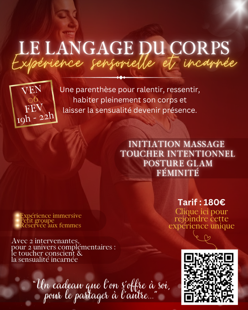 2026-02-06 19:00:002026-02-06 22:00:00Europe/ParisLe Langage du Corps - Expérience sensorielle et incarnéeReservations on : https://www.billetweb.fr/le-langage-du-corps-experience-sensorielle-et-incarnee