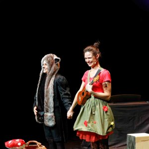 Nichés au cœur de la forêt, les spectateurs s'apprêtent à écouter un conte lorsque le Loup interrompt le récit, mécontent.