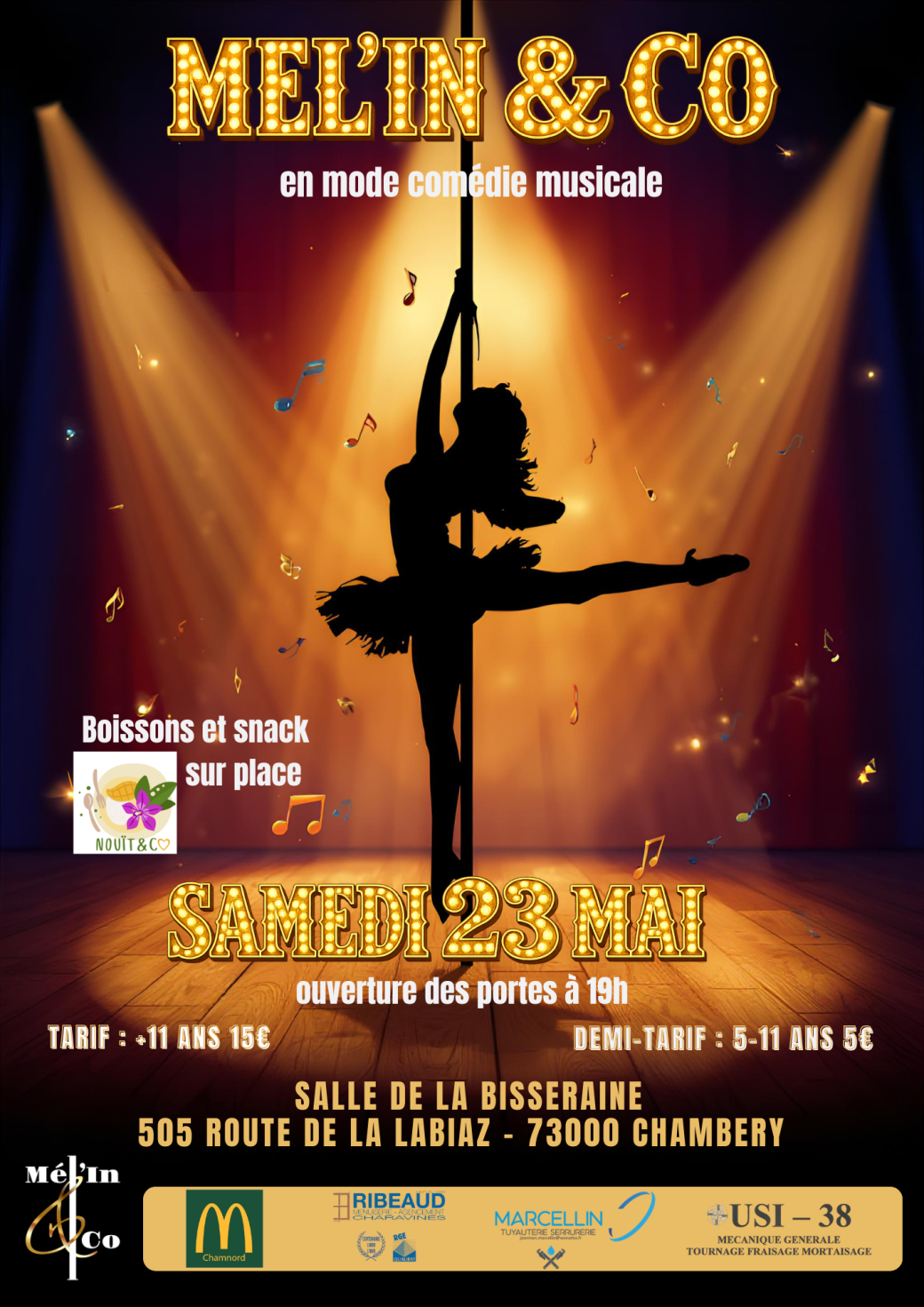 Venez découvrir 1h30 de spectacle polesque captivant, interpété par les élèves de l'école Mél'In and Co à Chambéry. Vous y retrouverez tous les niveaux du studio dans un show rempli de passion, de bienfaillance et d'amour pour notre passion commune. Venez vivre un moment inoubliable!