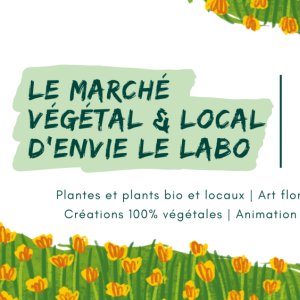 Participez au premier Marché Végétal et Local d'Envie Le Labo, où vous profiterez pour acheter à prix accessible (entre 1€ à 40€) une sélection de plantes et plants, d'art floral, de cosmétiques naturels, de créations 100% végétales proposée par des acteurs locaux, créatifs et engagés.