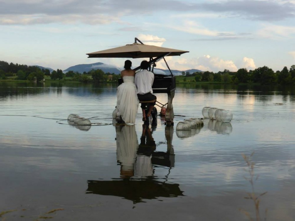 En cas de pluie, le concert est maintenu grâce à notre piano imperméable... à vos parapluies!
