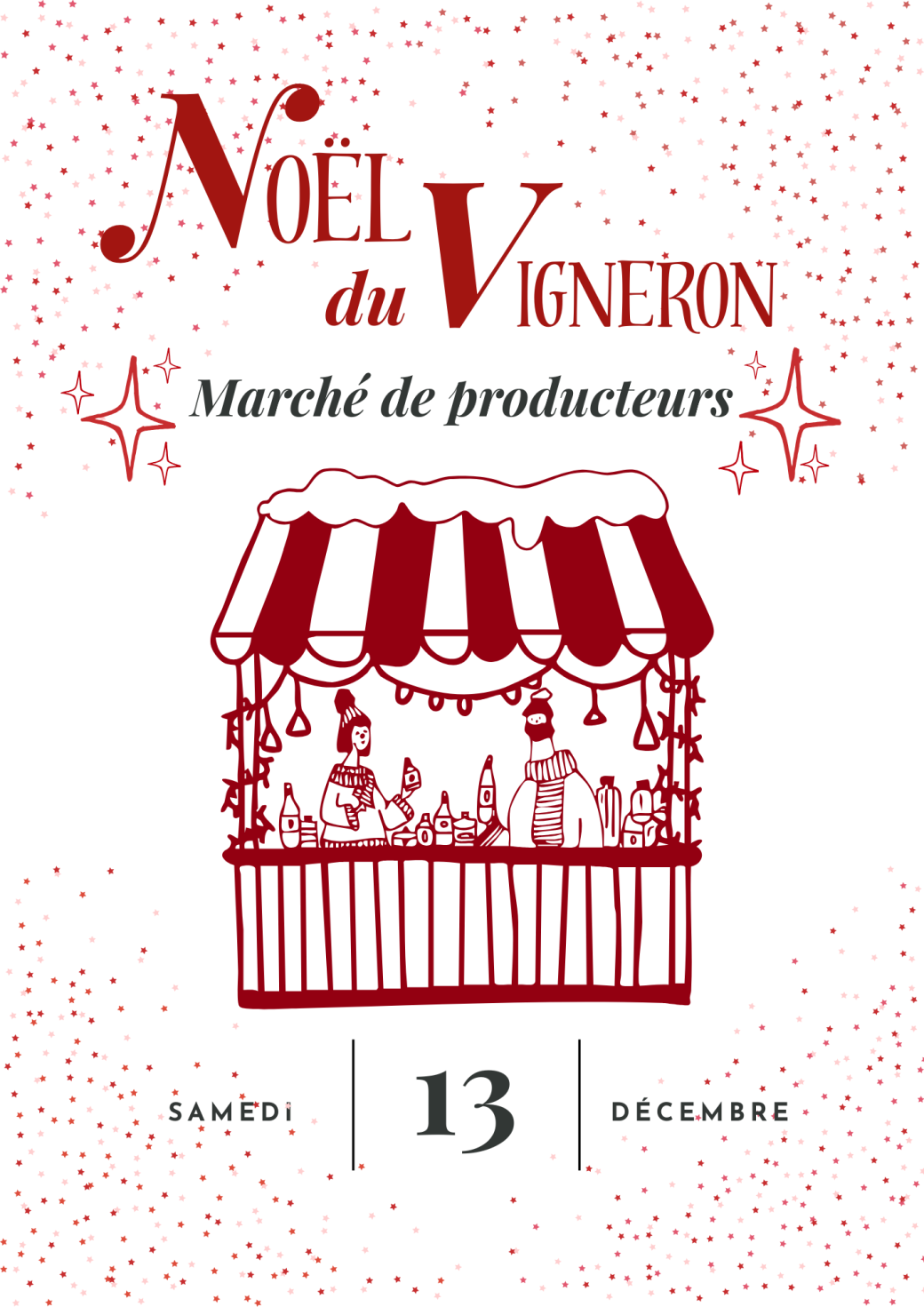 Nous avons le plaisir de vous donner rendez-vous le 13 décembre, de 10h30 à 16h, pour profiter de notre Marché de Noël Vigneron.