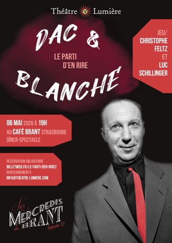 Dans « Le Parti d’en Rire », Christophe Feltz et Luc Schillinger font entendre une sélection des meilleurs textes de nos deux compères. En passant de « Signé Furax » à « Malheur aux Barbus », sans oublier le fameux sketch du « Fakir », le « Schmilblick » et autres jeux, lettres, discours et réclames, découvrez dans ce nouveau spectacle les pensées et aphorismes incongrus, surprenants et désopilants de Pierre Dac & Francis Blanche.