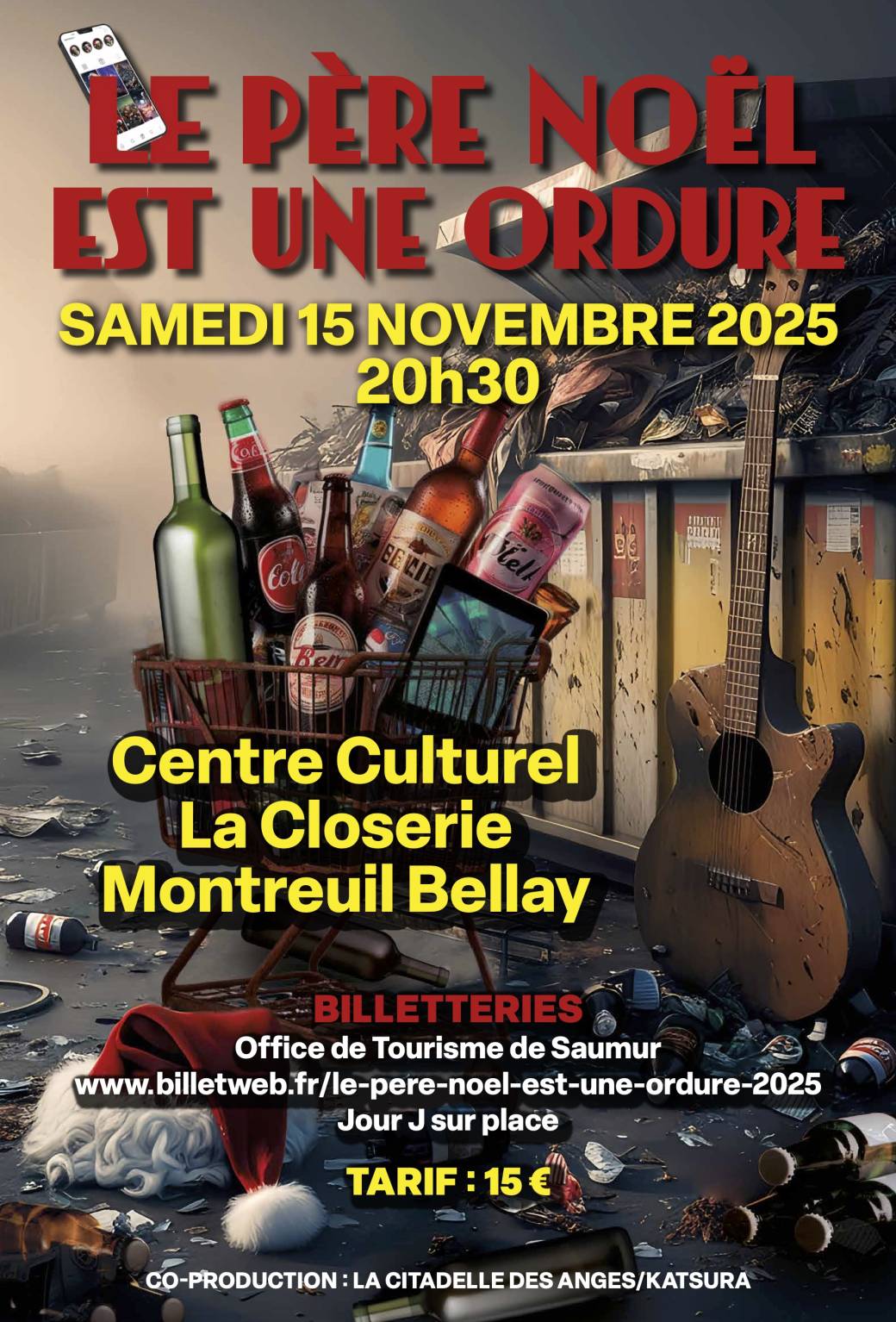 Retrouvez « Le Père Noël est une Ordure » avec la compagnie des Anges de la Citadelle à l’aube de l’hiver à La Closerie à Montreuil Bellay le samedi 15 novembre 2025 à 20h30.