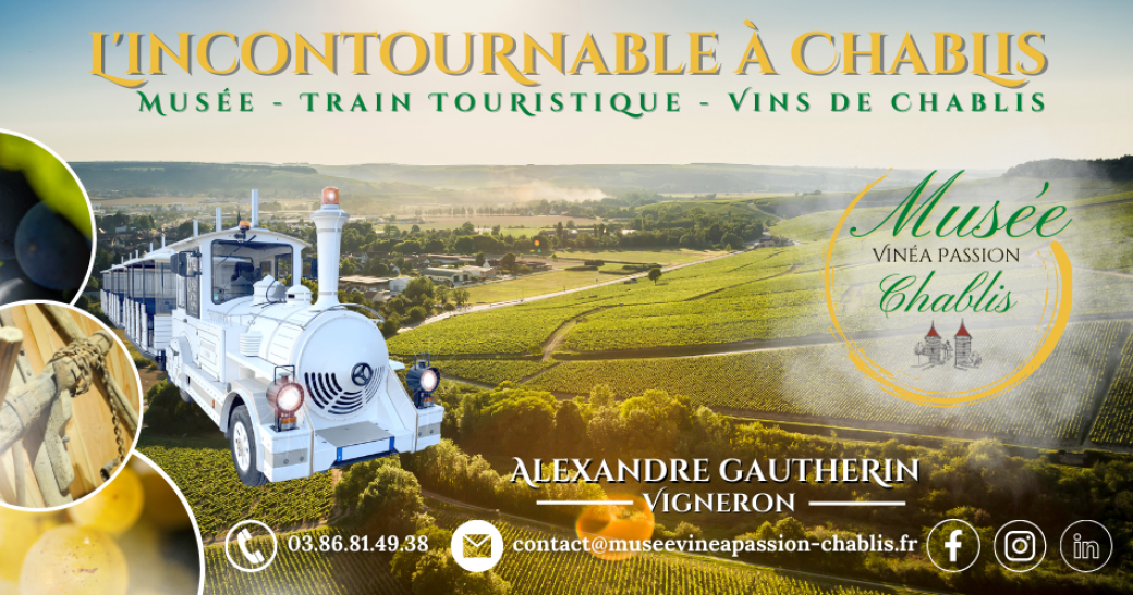 Partez à la découverte de Chablis en train….. Le Petit Train de Chablis propose une visite touristique et commentée en plein cœur de Chablis et de son vignobles : Pendant 45 minutes, seront évoqués les lieux historiques de Chablis et la découverte de ses crus à la renommée mondial.