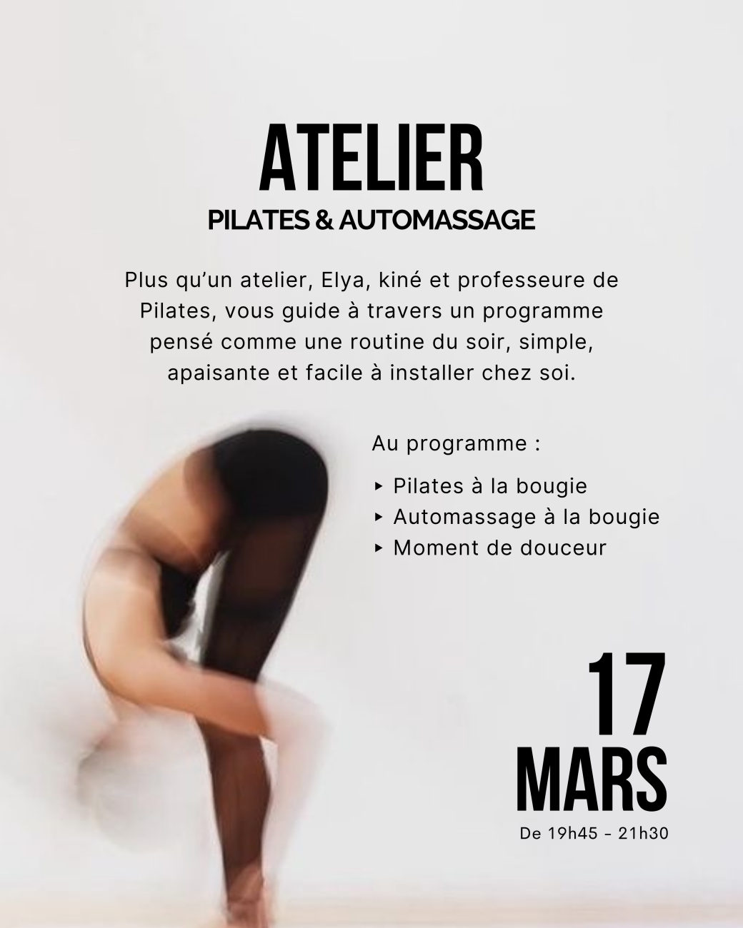 Plus qu’un atelier, @pilatesbyelya, kiné et professeure de Pilates, vous guide à travers un programme pensé comme une routine du soir, simple, apaisante et facile à installer chez soi.