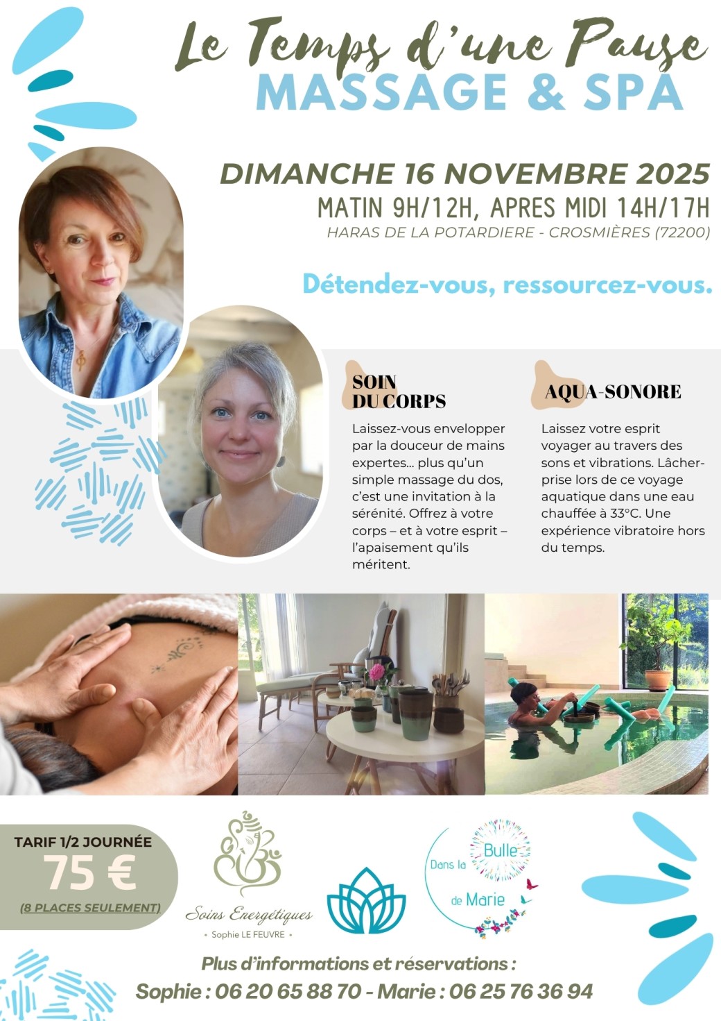 Le Temps d'une Pause : Massage & Spa revient avec de nouveaux ateliers et de belles surprises pour vous offrir un moment de déconnexion et de ressourcement inoubliable.