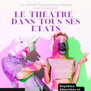 2023-06-03 14:00:00 2023-06-03 16:00:00 Europe/Paris Le Théâtre dans tous ses états Reservations on : https://www.billetweb.fr/le-theatre-dans-tous-ses-etats3 -- Des collégiens de 11 à 15 ans qui s'attaquent au théâtre absurde, des saynètes à 2, 3, 4, 16 ! Venez découvrir du théâtre dans tous ses états, des Diablogues, à Tardieu, en passant par un ballet aquatique !  Un pur moment de théâtre !    La Laurentia, Orléans, France ZIGOTASTIQUES