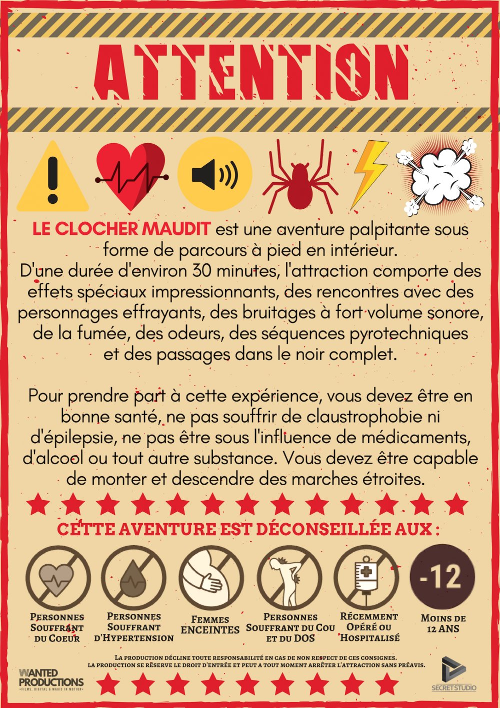 le clocher renferme quelques personnages sinistres, une mise en scène et des décors impressionants. Ce parcours est fortement déconseillé aux moins de 12 ans.