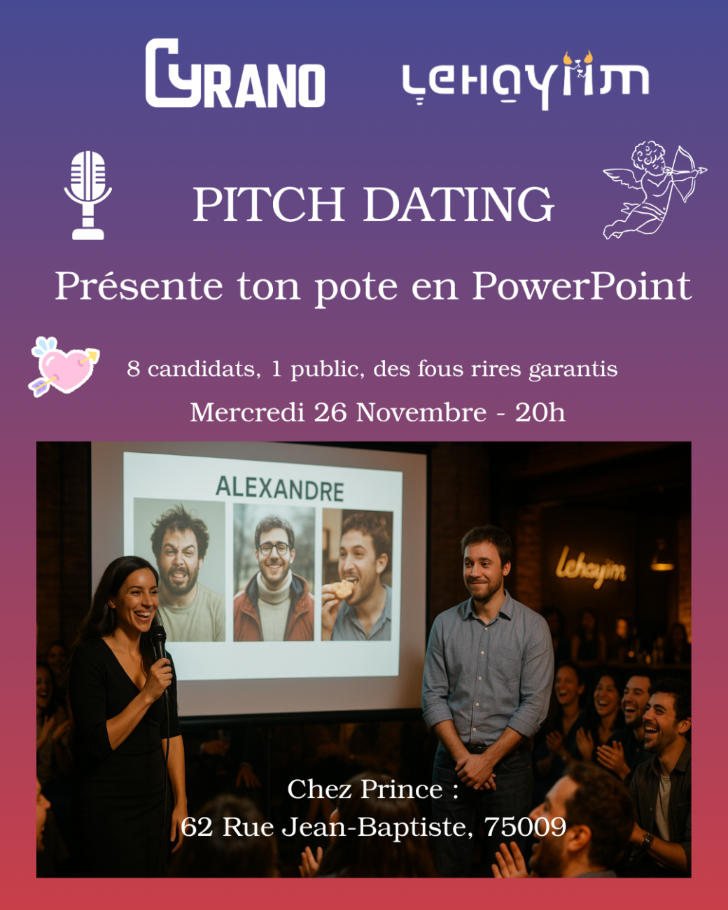 Reservations on : https://www.billetweb.fr/lehayiim-pitch-dating --