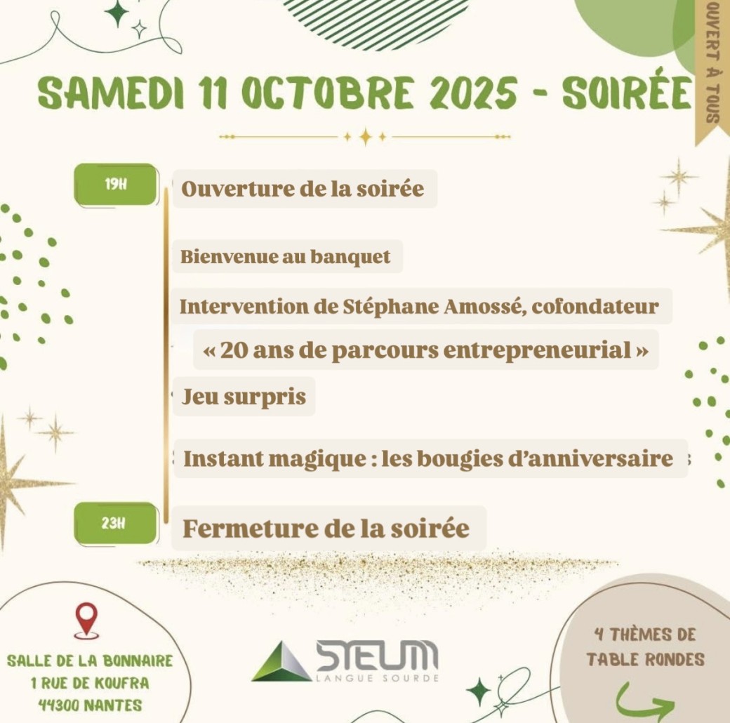 2025-10-10 16:45:002025-10-11 23:30:00Europe/ParisLes 20 ans de STEUM - Vendredi 10 & Samedi 11 Octobre 2025Reservations on : https://www.billetweb.fr/les-20-ans-de-steum-vendredi-10-samedi-11-octobre-2025