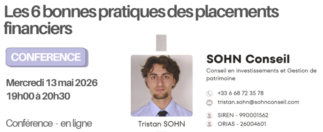 2026-05-13 19:00:002026-05-13 19:00:00Europe/ParisLes 6 bonnes pratiques des placements financiersReservations on : https://www.billetweb.fr/les-6-bonnes-pratiques-des-placements-financiers1