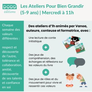 2025-12-31 11:00:00 2025-12-31 12:00:00 Europe/Paris Les ateliers pour bien grandir (5-9 ans) Reservations on : https://www.billetweb.fr/les-ateliers-pour-bien-grandir-5-9-ans2 -- Un atelier pour bien grandir grâce à des contes initiatiques permettant de réfléchir et changer son regard sur soi, sur les autres et sur son environnement.   Dans cet atelier, Vanoa lira une histoire qu'elle a écrite elle-même. Il permettra de comprendre et vivre les valeurs qui nous permettent de bien vivre ensemble, grâce à : – la découverte de l’histoire du ou des personnages principaux – des réflexions en groupe à partir des jeux proposés à la fin de chaque ouvrage.   Ensuite, une activité créative ou corporelle autour du thème abordé dans l'histoire sera proposée. On réfléchit, on s'amuse et on vit ensemble le thème du jour !   6 thèmes sont proposés : - le respect et la politesse - la découverte de l'autre et les émotions - l'amitié au-delà des différences - amitié et collaboration - connaissance de soi et estime de soi - découverte de ses talents et confiance en soi   Les enfant qui ont vécu l’expérience ont adoré ! Contribuez avec nous à un monde plus juste et plus bienveilla… 27 Grand Rue, 74160 Saint-Julien-en-Genevois, France Vanoa