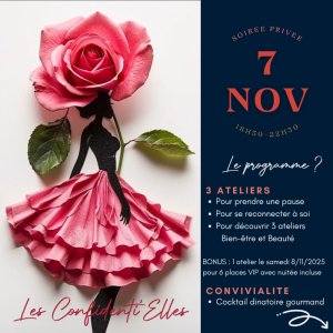 Reservations on : https://www.billetweb.fr/les-confidentielles-une-parenthese-feminine-enchantee-autour-de-3-ateliers-bien-etre-et-beaut --