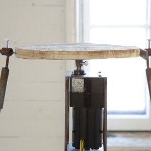 Structure de métal, moteur et tranche d’arbre. Objet impossible à réaliser sans l’apport de David Dallaire et de l’Oeil de poisson à Québec.