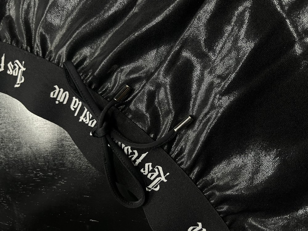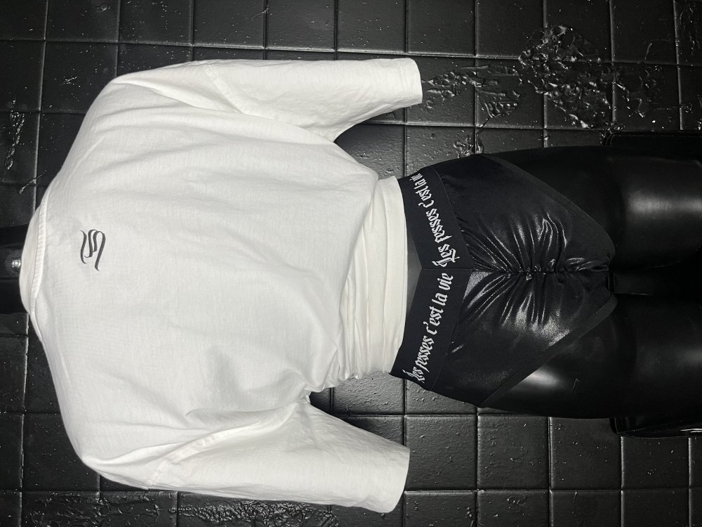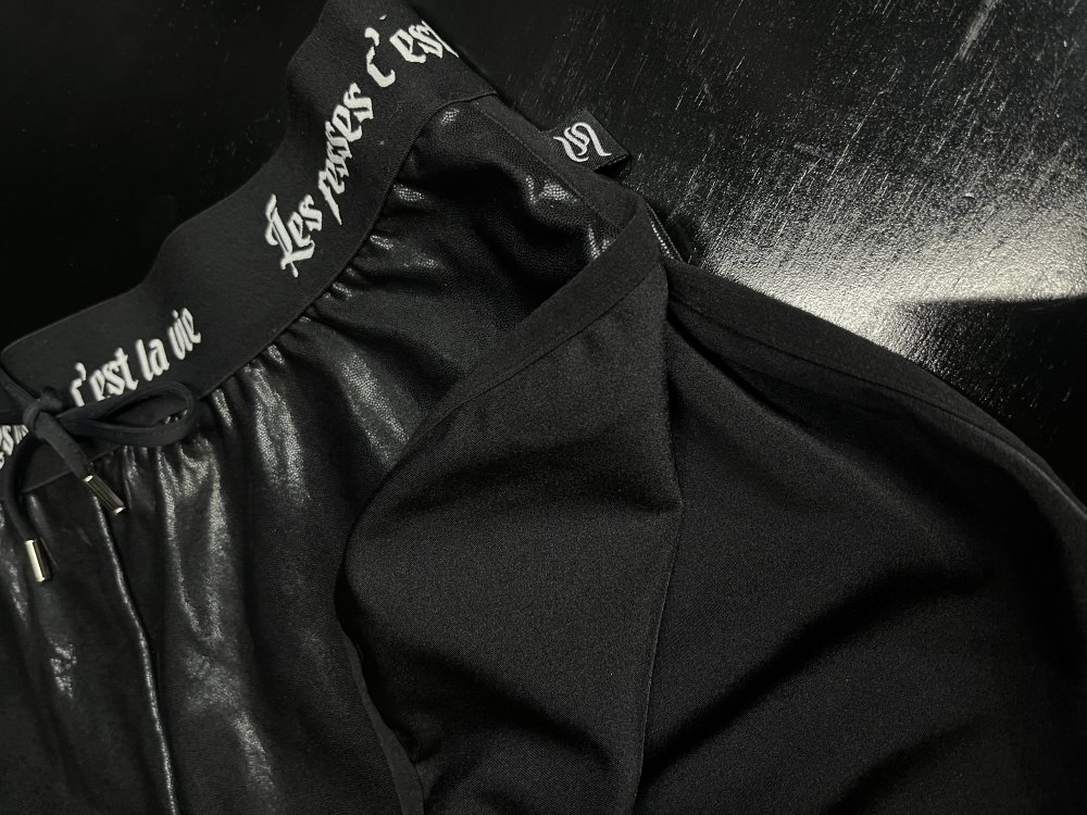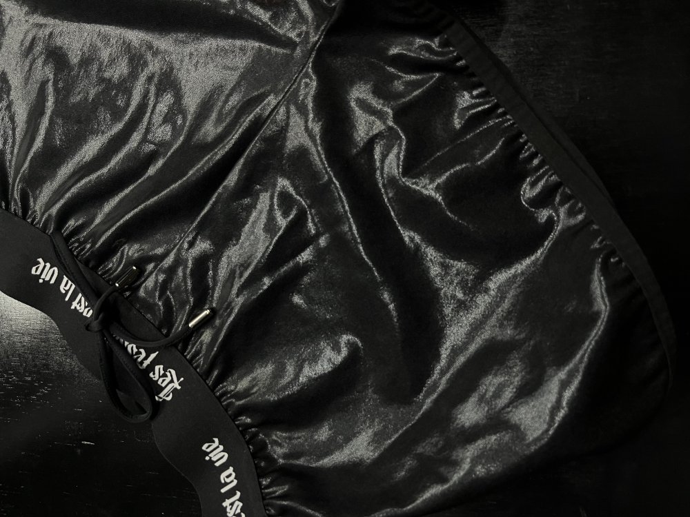Le short, inspiré des boxers et des clips 2000s, a des fentes sur le côté et une taille élastique bien marquée. Le shorty, lui, est là pour épouser les formes sans jamais les enfermer.