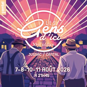 2026-08-07 21:45:00 2026-08-07 23:40:00 Europe/Paris Les Gens d'Ici vendredi 7 août 2026 Reservations on : http://www.lesgensdici.org -- SPECTACLE VIVANT EN PLEIN AIR (Son, lumière) Scène ouverte sur la vie d’un petit village du Cantal, les Gens d’ici vous font voyager au travers des générations et des grandes dates de l’Histoire. Les Gens d’ici, c’est l’histoire d’un choix : Partir ou rester.  «Partir ou bien rester, mais qui donc a raison ? Ceux qui veulent rester ou bien ceux qui s’en vont ?» C’est l’histoire de destins croisés entre deux amis d’enfance, liés de façon indéfectible à la même terre, à la même philosophie de vie : venez à la rencontre de Baptiste et Pierrot. Ils sont, avec tous les acteurs, l’âme des Gens d’Ici. Investis et passionnés, plus de 200 acteurs, tous bénévoles, animent, avec générosité et enthousiasme, cette fresque historique. Ils perpétuent, au fil des générations, cette manifestation, pour le plaisir de jouer, transmettre des valeurs, contribuer à la dynamique d’un territoire rural auxquels ils croient. Venez écouter battre le cœur de ce village. Venez écouter battre le cœur des Gens d’ic… Jussac, France Comité d'Ambiance Jussacoise
