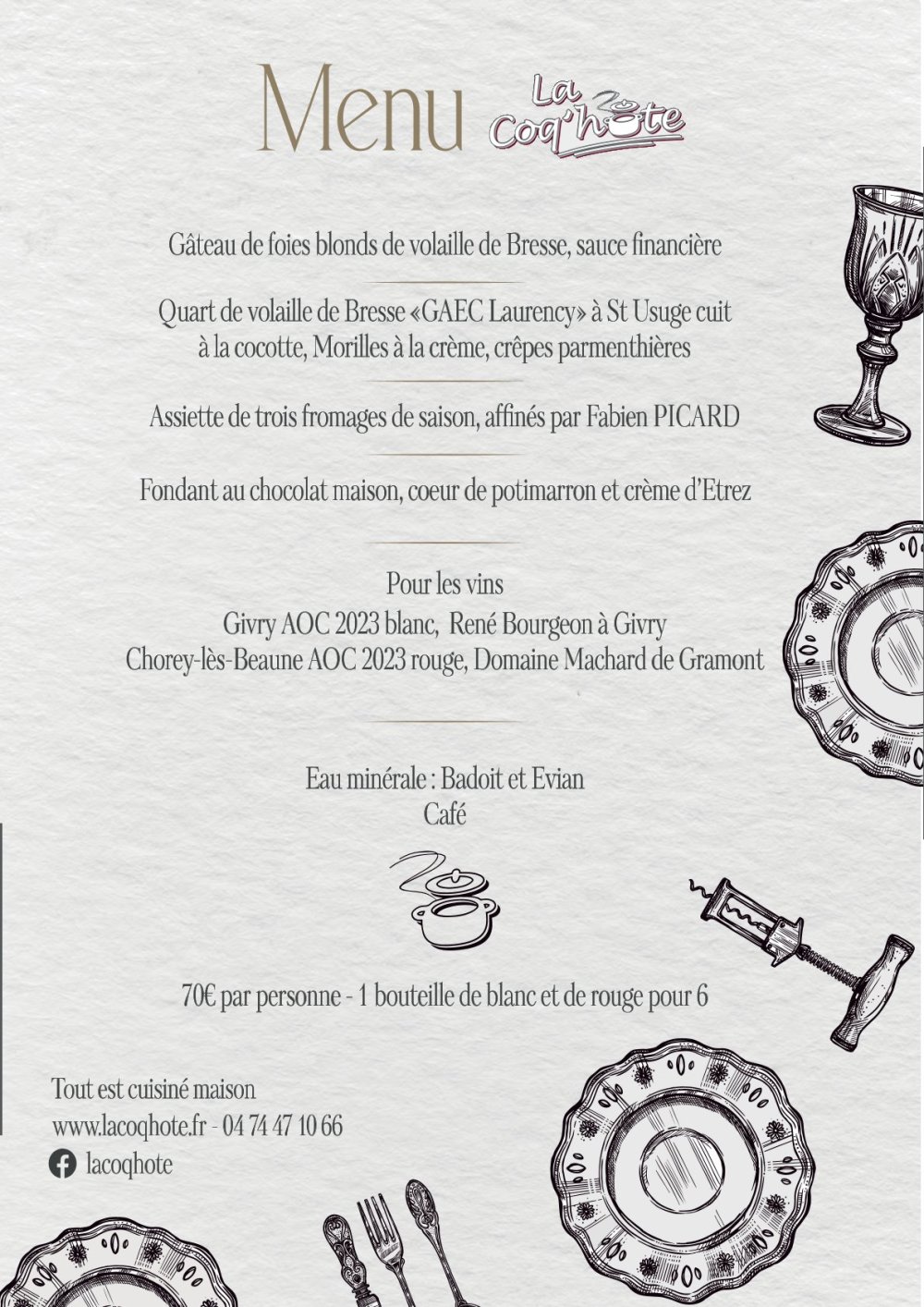 Déplacement à pieds à 200m pour déjeuner au restaurant La Coq'Hôte -