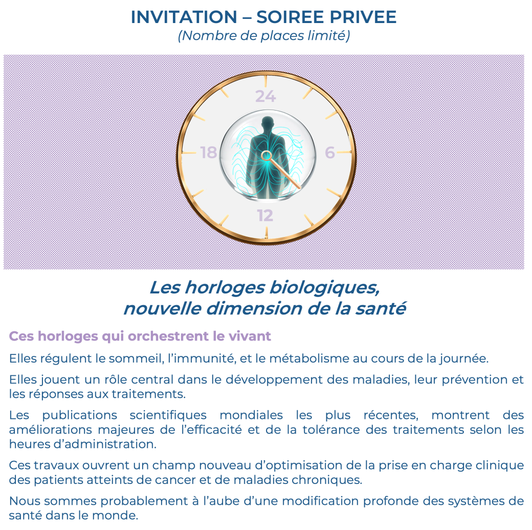 2026-04-14 18:00:002026-04-14 21:30:00Europe/ParisLes horloges biologiques, nouvelle dimension de la santéReservations on : https://www.billetweb.fr/les-horloges-biologiques-nouvelle-dimension-de-la-sante