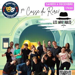 2025-12-06 17:30:002025-12-06 19:30:00Europe/ParisLes Impayables : Premier casse du rire ! (show des débutants)Reservations on : https://www.billetweb.fr/les-impayables-premier-casse-du-rire-show-des-debutants