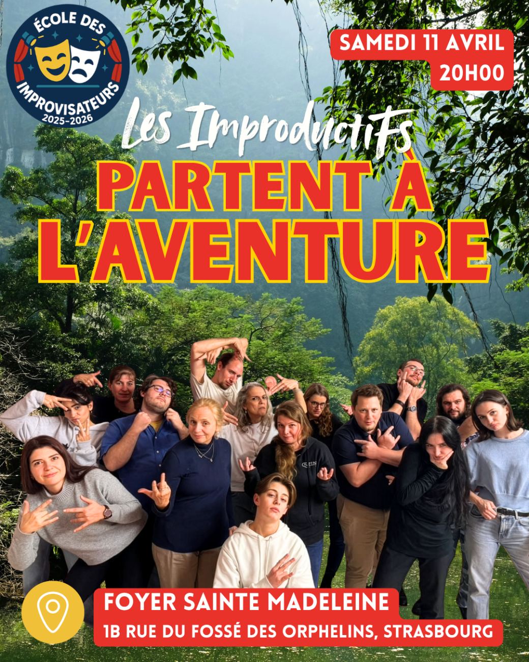 2026-04-11 20:00:002026-04-11 22:00:00Europe/ParisLes Improductifs partent à l'aventure ! (show d'impro)Reservations on : https://www.billetweb.fr/les-improductifs-partent-a-laventure-show-dimpro