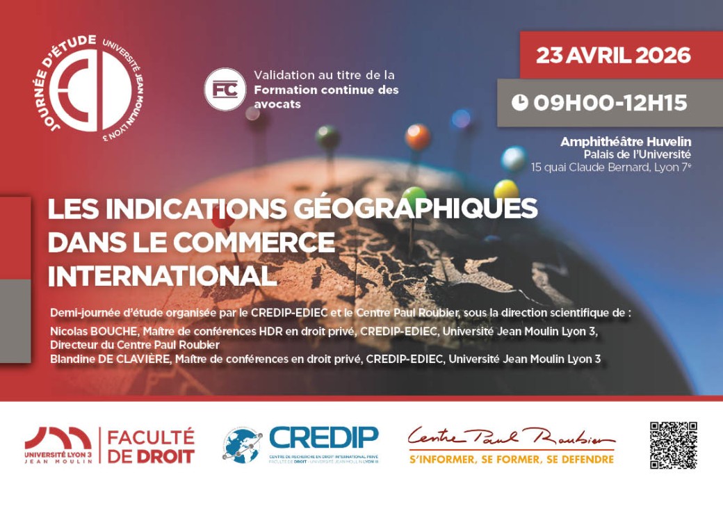 2026-04-23 09:00:002026-04-23 12:15:00Europe/ParisLes indications géographiques dans le commerce internationalReservations on : https://www.billetweb.fr/les-indications-geographiques-dans-le-commerce-international